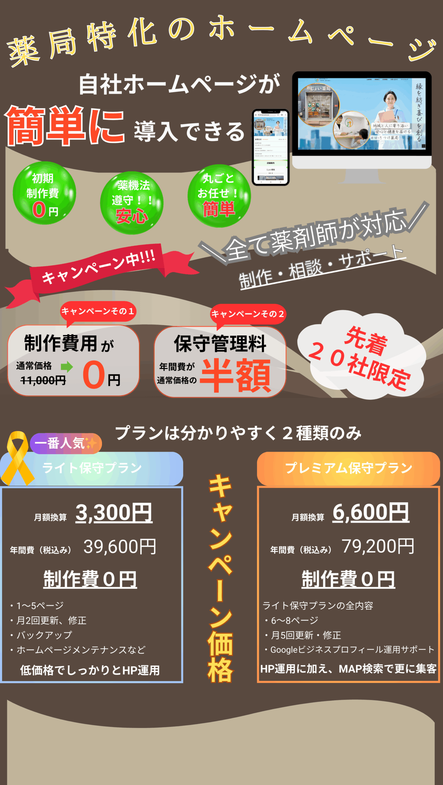 ✅ 条件:弊社サイト内の事例紹介として、制作実績を掲載させていただける薬局様