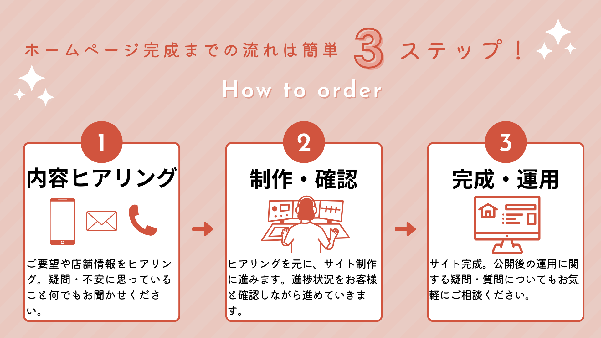 | フリー素材での制作(写真・イラスト) | ✅ | 店舗画像以外は無料素材使用OK |